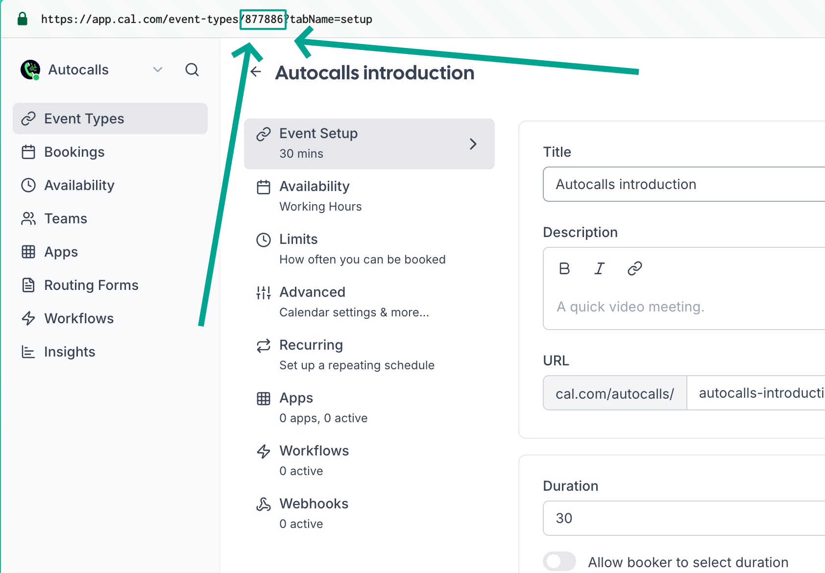 To include the caller’s phone number in calendar events:- Go to your event settings in Cal.com